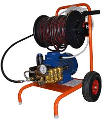 Стальная конструкция рамы с большими пневматическими колесами для движения позволяет легко перемещать аппарат по любым поверхностям.  Трехплунжерный насос высокого давления с керамическими плунжерами и специальными износостойкими уплотнения для продолжительной работы соединен с электродвигателем напрямую, что исключает выход из строя муфты или ослабления ремней. Байпасный регулировочный клапан обеспечивает стабильную работу насоса высокого давления без пиковых нагрузок. Фильтр тонкой очистки воды предохраняет гидродинамический аппарат от преждевременного выхода из строя.